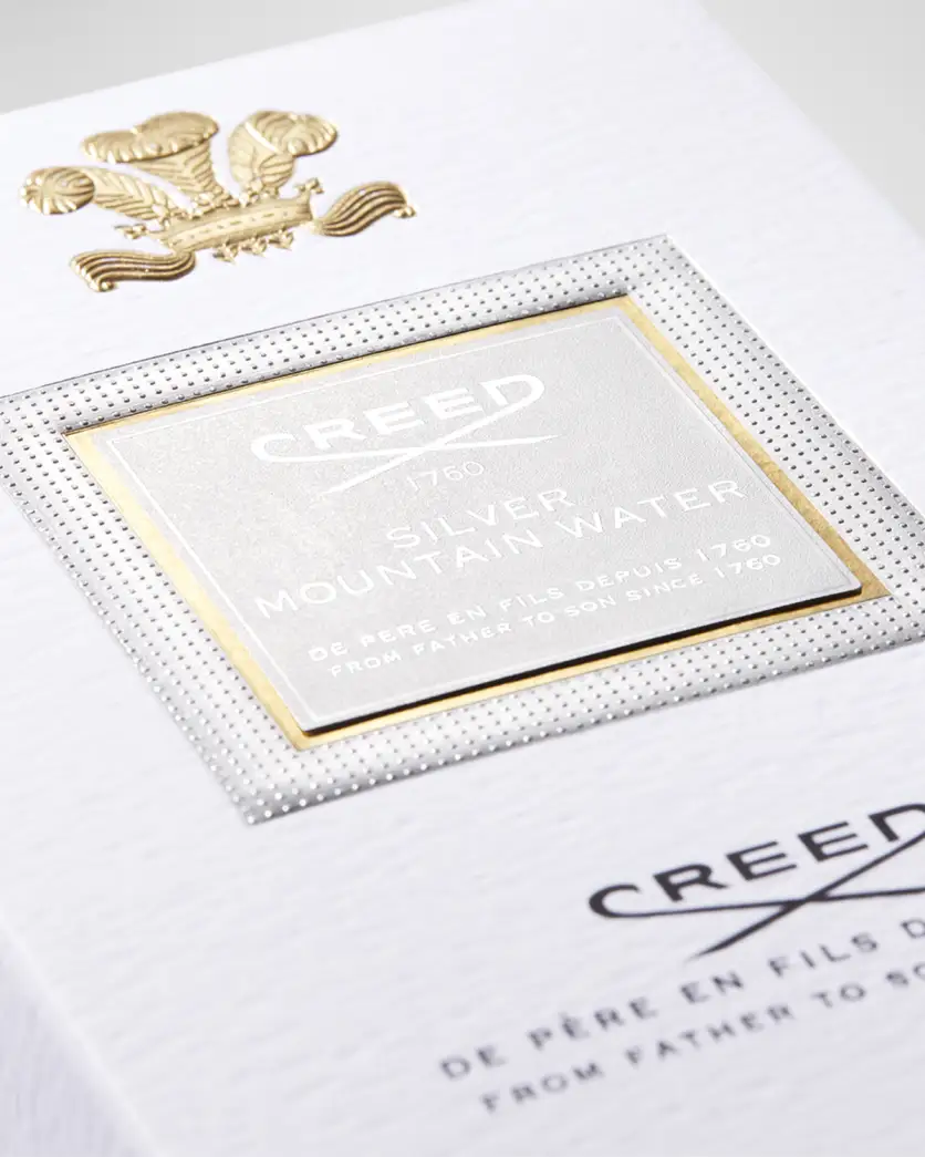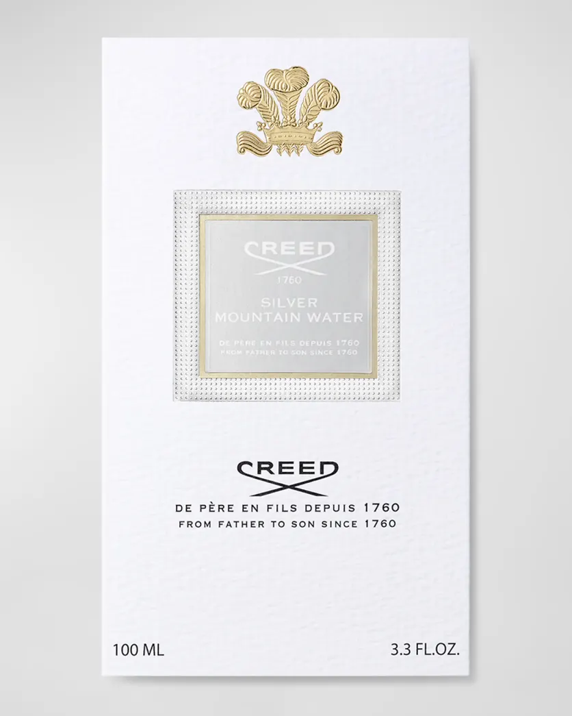 The adventurous Silver Mountain Water evokes sparkling streams coursing through the snowcapped Swiss Alps, a bracing landscape in which Olivier Creed, a championship skier, finds relaxation and renewal. A bestseller since its launch, this modern scent captures the purity of the mountains-soft, milky-sweet blackcurrants mixed with green tea, the richness of bergamot, and sandalwood. Its opaque white bottle hints at icy snow banks topped with a glistening cap like a glacial silver stream.